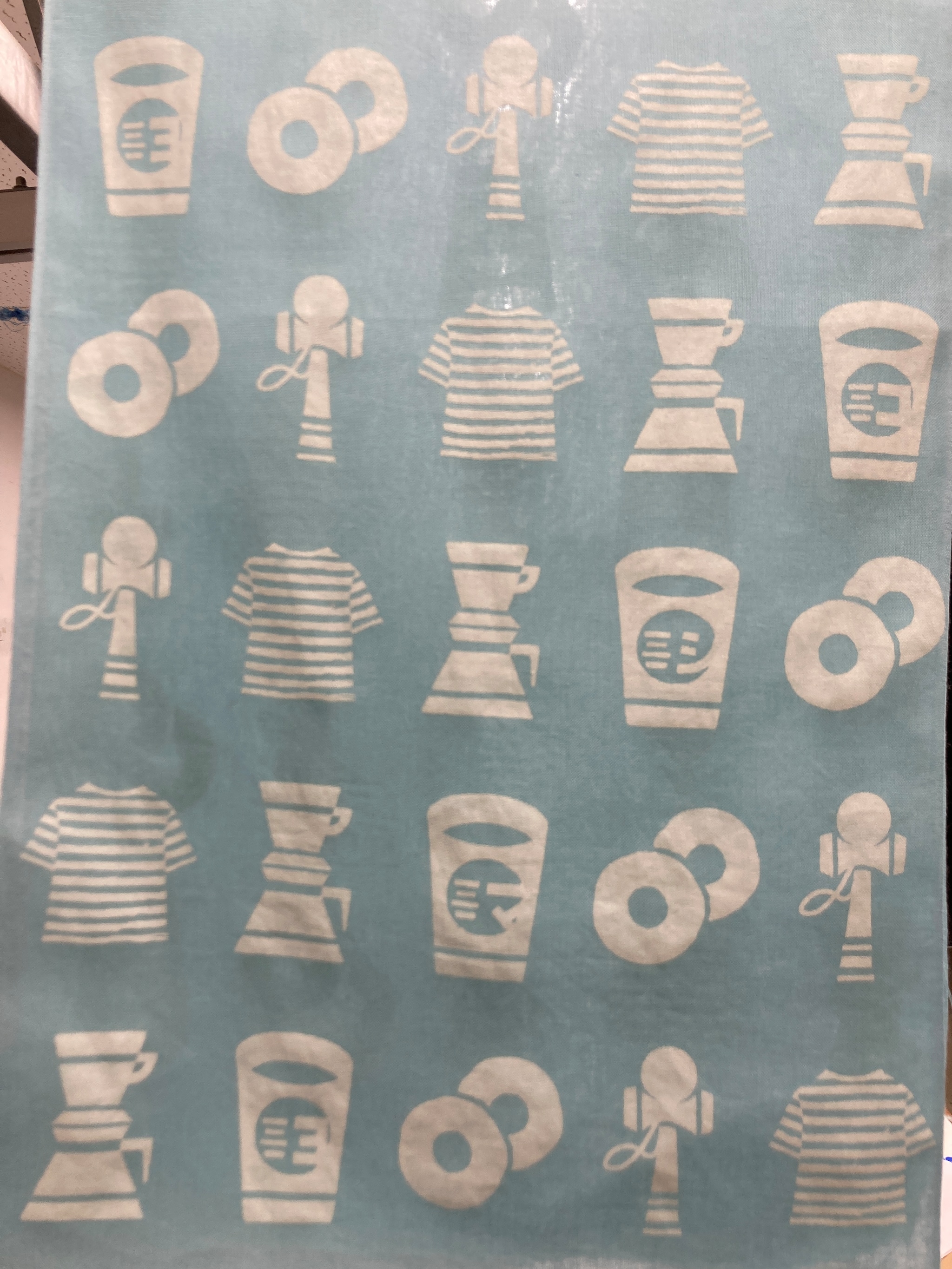 出店100回達成を記念してデザインをイラストレーターの平林香乃さんに、染めを田中直染料店さんにご協力いただき1枚ずつ手染めで製作しました。
